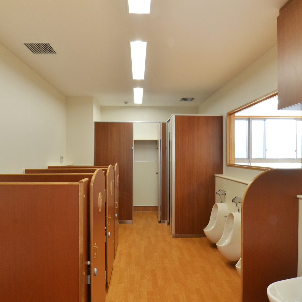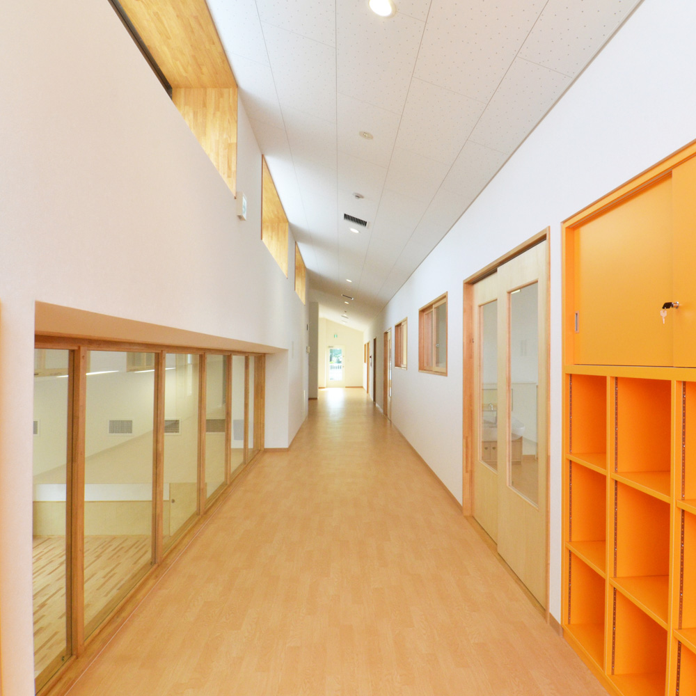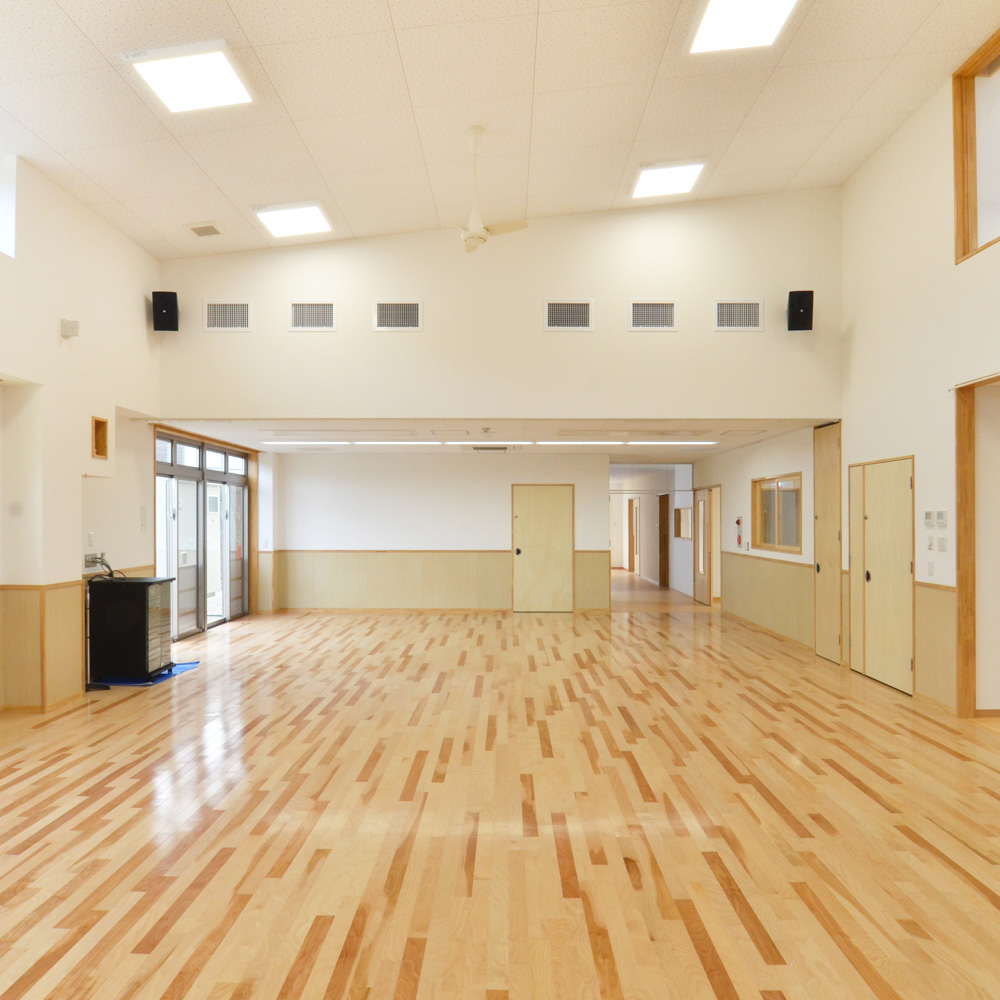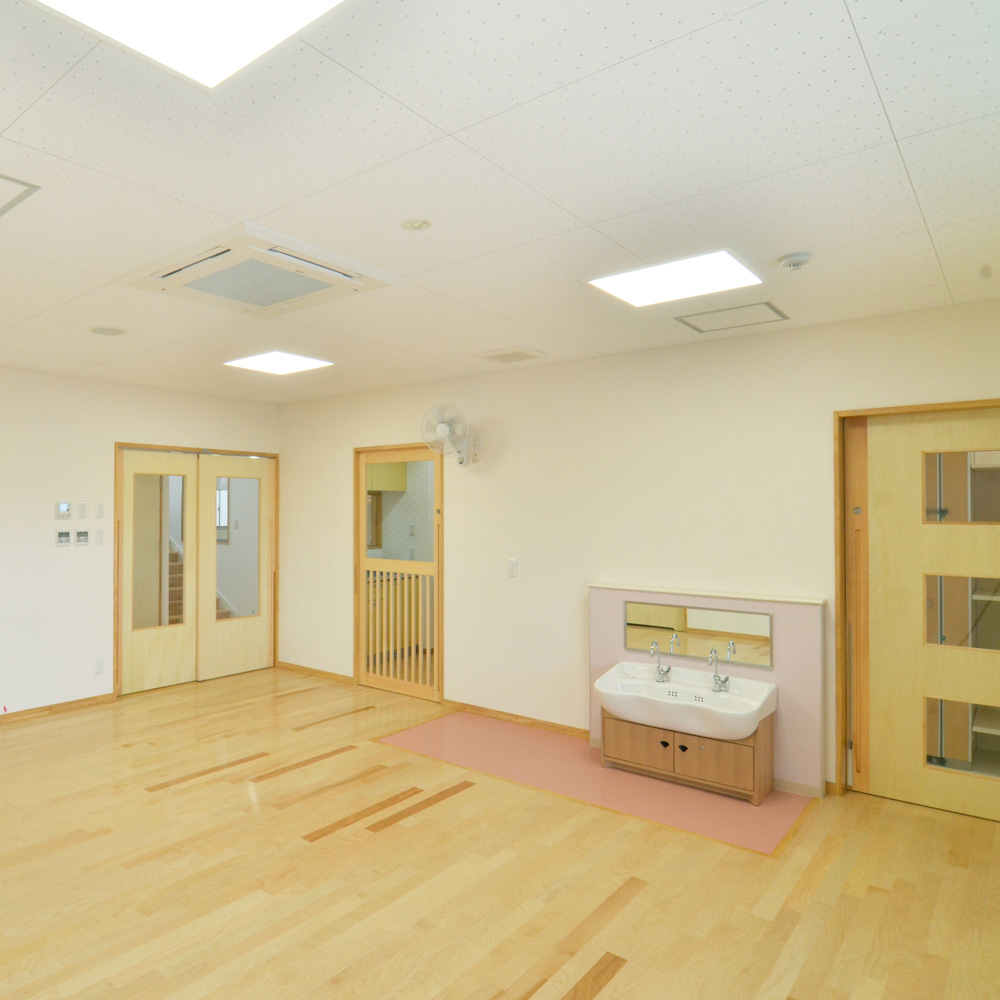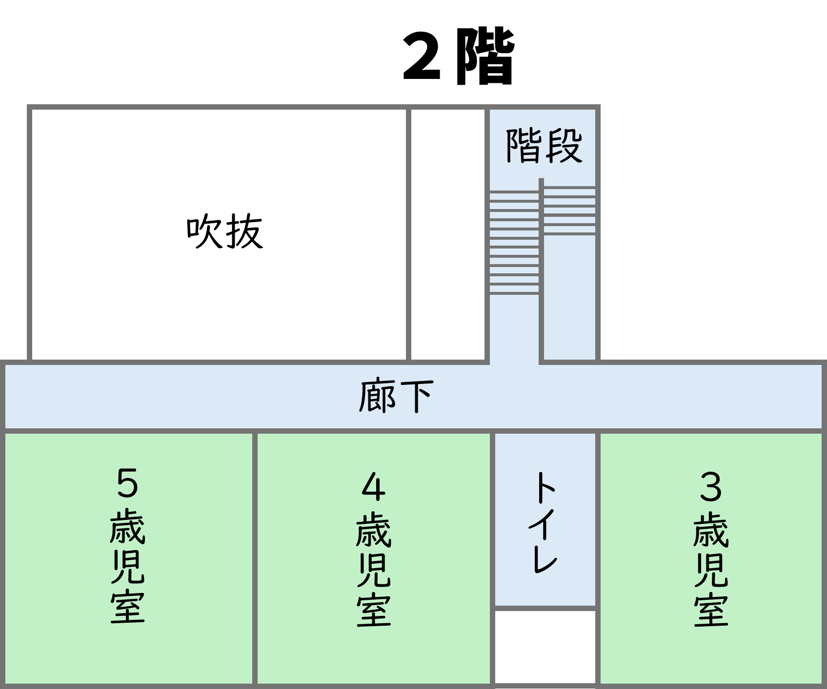 | 保育室 | 4室 2歳児 35.28㎡ 3歳児 53.92㎡ 4歳児 56.72㎡ 5歳児 60.34㎡ |